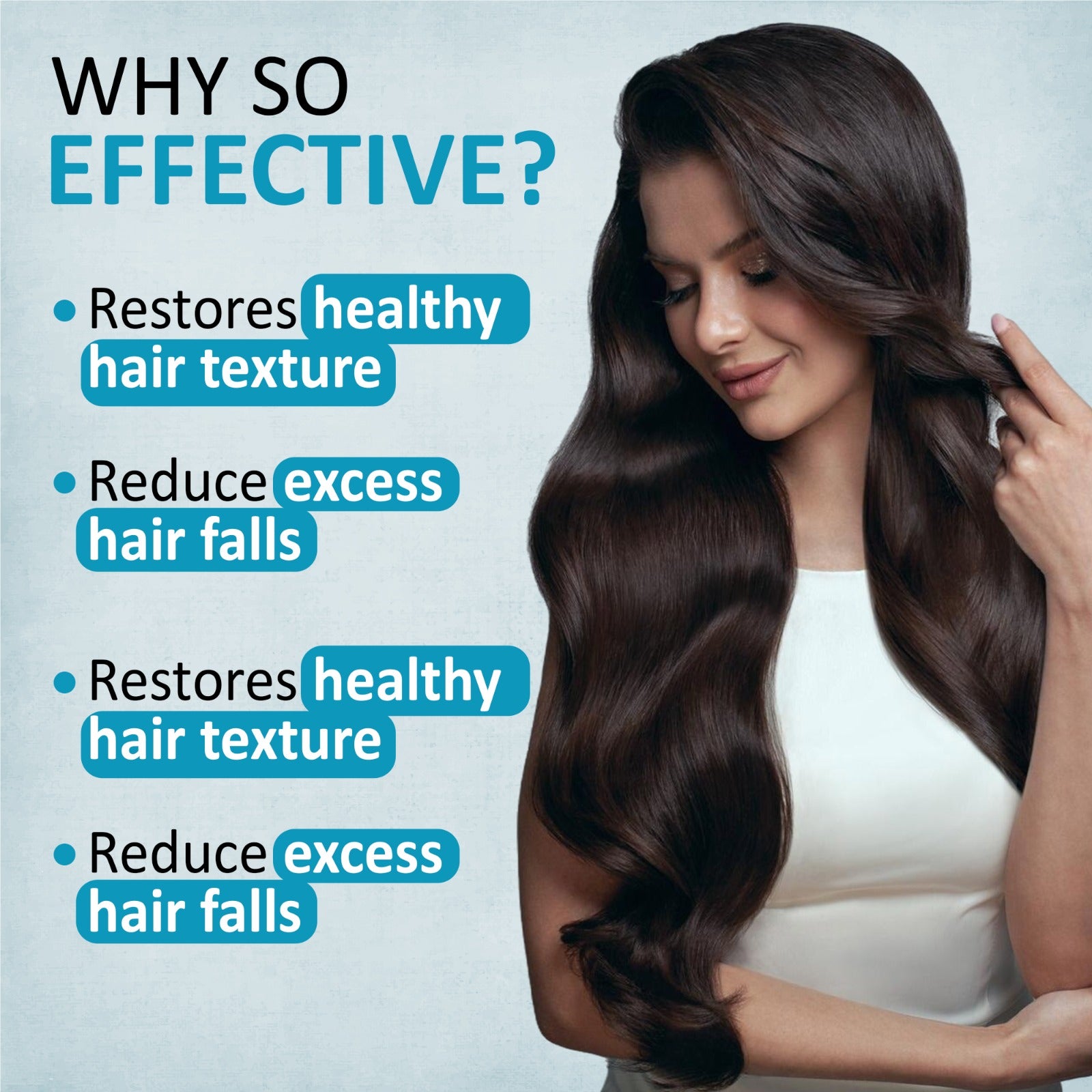 This powerful combination targets every reason behind hair fall — weak roots, unhealthy scalp, poor nutrition, breakage, thinning and slow growth.
