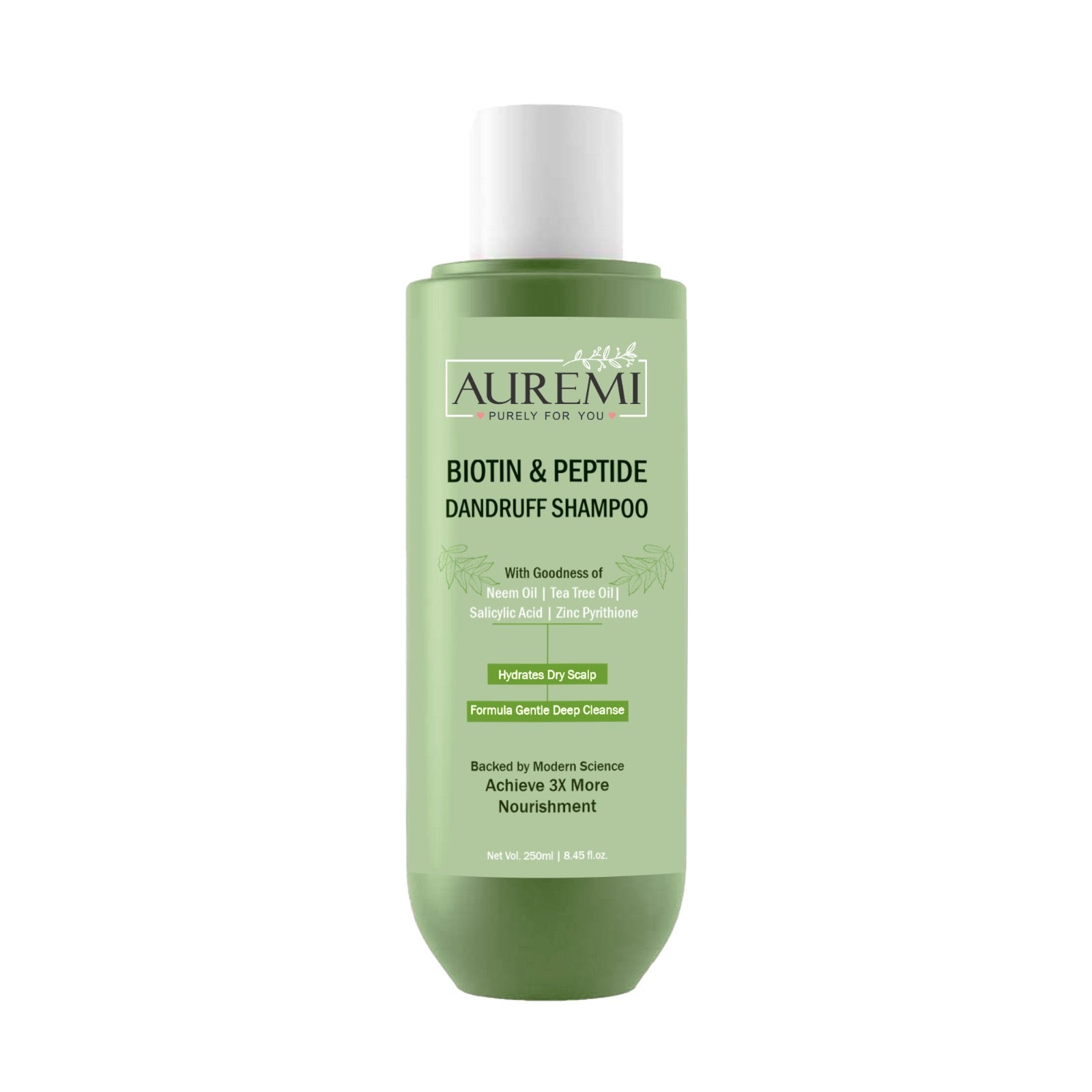 Auremi Anti-Dandruff Shampoo with Biotin & Peptides | Removes Flakes, Soothes Itchy Scalp & Reduces Hair Fall | Neem & Tea Tree Formula | Gentle Daily Use, Sulfate & Paraben-Free | 250ml